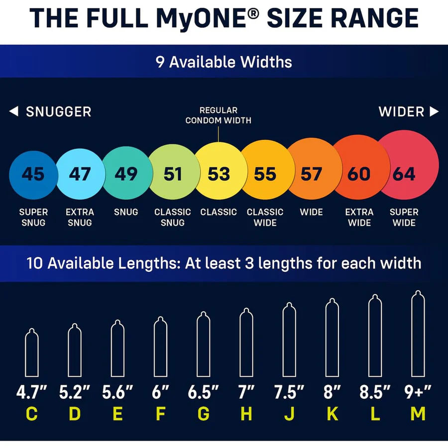 Our customers rave about the increased pleasure and confidence they feel when they find their perfect condom fit. With 9 different width options and 3-4 length options for each, you can easily find the right fit for you.