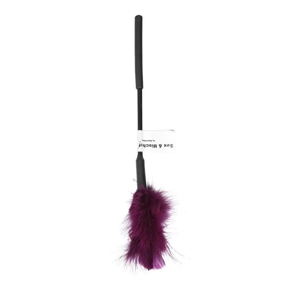 Introducing the S&M Feather Tickler in a stunning purple hue, a unique addition to your intimate moments. This exquisite tickler is crafted from soft turkey feathers, ensuring a whisper-soft touch that tantalizes the skin.
